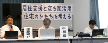 (一社)くらしサポート・ウィズ専務理事の中根裕さんからは、居住支援の実際やニーズ、法制度の状況などとあわせ、生協がそこに関わる可能性が報告された。