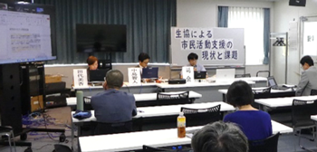 研究会の座長である産業能率大学教授の中島智人さんから市民活動支援の現状や歴史的経緯を踏まえ、行政による市民活動支援が行政主導の協働へと変化してきている現状を報告いただくとともに、NPO法人ぐらす・かわさきの田代美香さんから実際に地域で活動している市民活動団体の現場の視点から生協の市民活動支援への期待を語っていただいた。パルシステム東京の北川勝之さんからは市民活動助成基金の活動の実際を報告いただいた。