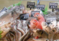 ●新鮮で豊富な魚介類がきれいに並ぶ(一般スーパーの魚売り場)