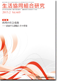 生協総研は,かねてから世界の生協動向を折に触れて紹介してきた。近年でも,本誌では「MIGROSとCOOPスイスの2013年決算の概要」・「スペイン第2の生協CONSUMを視察して」(2014年6月号),「イギリス・コーペラティブ・グループの経営危機とそれを招いたもの」(2014年8・9月号)などを扱った。さらに,『生協総研レポート』でも「欧州生協の動向2011」(69号),「イタリアの生協の現状について」(76号)を刊行している。しかし,こうした生協の変遷を描ききるためには,背景にある政治や経済,社会動向の変化,そして流通業・競合の変遷と生協のポジションの研究も不可欠となる。生協総研でも研究報告として2011年7月に第3回公開研究会「イギリス・イタリアにおける社会的経済の動向と日本への示唆」を開催したが,まだまだ不十分である。一方,欧州では,リーマンショック以後,国家の債務危機,失業の長期化と青年の就業難,押し寄せる移民と社会的排除など経済と社会における緊張が高まってきており,抜本的な解決策は未だ見えてはいない。しかも2014年5月の欧州議会選挙では,イギリス,フランス,デンマーク,ギリシャにおいてEUの存在そのものに疑問を有する勢力が躍進する事態とさえなっている。