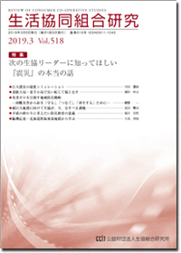 今月の特集タイトルは、ことさらに「次の生協リーダー」と謳っている。理由は、これから10年、20年先のリーダーは、巨大震災に直面する可能性がきわめて高いと考えるからだ。東京オリンピックの2年後、2022年は関東大震災から100年になる。特集の筆者たちが指摘している通り、巨大震災が「必ず来る」ことを前提に、次のリーダーは生協の未来や組合員の暮らしのために、何が必要か、何をすべきかを考え、行動していくことが求められる。そして、その日まであまり時間がないことを、次の生協を担っていく世代にこの特集を通して知ってもらえたら幸いである。