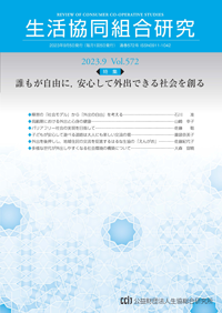 石川論稿では障害と健常という状態はいずれも環境依存的であり障害を持つ人の外出に不自由がある場合、その人の外出を阻害している環境等に問題があるとする障害の「社会モデル」を提示、このモデルは(障害を持つ人だけではなく)社会全体に普遍的なメリットをもたらすのであり、このモデルに沿った環境整備や合理的配慮を進め、誰もが自由に外出できる社会を創ることの必要性を説く。続いて山崎論稿では外出と高齢者の健康に関する様々な調査の知見に基づき、継続的な外出が高齢者の心身の健康に好影響を与えること、高齢者の外出を促進する環境として他者との交流を伴う馴染みの場や街の中で少し休憩できるベンチ等の有用性について論じられている。続く佐藤論稿では当事者として関わった交通アクセス運動の経過から東京オリンピック・パラリンピックを契機としたバリアフリー施策の策定プロセスについて、これまでの成果と残された課題について述べられている。そして薬袋論稿では、誰にとってもおそらく最も身近な外出先ともいえる道路を、より広く人々に開かれた場とする方策について欧州諸国の事例を紹介、そのような方策を日本にも導入することで得られる多様なメリットを提示している。佐藤・山崎論稿では、はるな生協(群馬県)のえんがお活動(事業所や組合員の自宅の前にベンチや椅子を置く)への取り組みを通じて、子どもから高齢者まで世代を問わず外出しやすくすること、そこから生まれる小さな交流を通して安心して生活できる地域づくりの可能性を示唆している。最後に大森氏のコラムでは技術の発達によりオンライン会議や買い物等、外出せずに目的を達することができるようになった今日においても、外出することから得られる効用には様々なものがあり、誰にとっても外出しやすい環境整備が必要であることが述べられている。