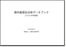 『都内基礎自治体データブック(2008年度版)』が完成しました。 このデータブックは、東京都内で「まちづくり」の活動を行おうとするときに前提とする基礎的なデータを提供しようという狙いから作成されたものです。対象とした自治体は、東京特別区と多摩地域の市です。