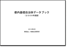 『都内基礎自治体データブック(2009年度版)』が完成しました。 このデータブックは、東京都内で「まちづくり」の活動を行おうとするときに前提とする基礎的なデータを提供しようという狙いから作成されたものです。対象とした自治体は、東京特別区と多摩地域の市です。