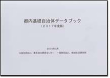 『都内基礎自治体データブック(2017年度版)』が完成しました。 このデータブックは、東京都内で「まちづくり」の活動を行おうとするときに前提とする基礎的なデータを提供しようという狙いから作成されたものです。対象とした自治体は、東京特別区と多摩地域の市です。